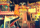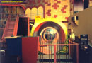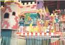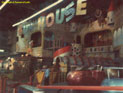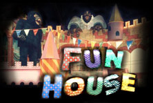 After we hand over our tickets, we are "Unleashed" into a complete and total fantasy world unlike no other. First, there is the classic revolving barrel to grab our attention. This is said to be one of the original parts from the older fun house, that was located in the old building. Next up, is another classic prop, slip boards, then onto a spiral staircase that rocked up and down, complete with a final kick in the ass with an ait jet! It was great fun watching first time walkers transverse this section on the journey through the Fun House! After this came another old stunt, shaker boards, again, said to come from the defunct fun house in the Palace. Into the building and into darkness we would go, as things began to take on a much more sinister look and feel! Whew!...... did you have fun? I sure did! Lets take a breather on a bench for a short bit of time. The palace’s Castle-style Fun House was the brainchild of George Lange, as he had a vision for a great facade and the Lopez team delivered, among others. Mr. Lange took a real personal interest in this attraction. As fans, we have him to thank for presenting such a wonderful Fun House! ( Today, the Green Devil ADC Prop still survives in PA) |