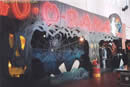 | A short ride of its kind, it was located on the mid-left hand side of the building. "Mad-O-Rama" only featured three stunts for its final years,. The first was a Yellow Painted Mad-Man holding a knife. This prop was formerly painted as an African native, holding a spear, but eventualy changed to be politically correct. |