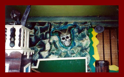 To the Left, a wicked wooden bridge to transverse. To the right, classic (and Rare!) Fun House Shaker Boards. You are about to enter the building of the Master Pirate! |