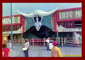 A very rare look at Tracey's version of his Haunted House, this time when his company was called: "Outdoor Dimensional Display Company". This name would have been pre-Messmore & Damon. This ride was in fact created and built at West View Park, defunct, near Pittsburgh, PA. |