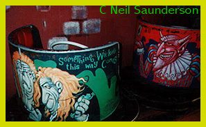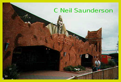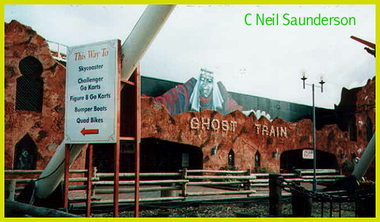 Southport Pleasureland is unusual in the UK as it had, until1996, one of the last single room ghost trains still existing.This ride, dating from the thirties, had a classic demeanor and represented the epitome of ghost train experiences.Not a stunner from the outside, boasting a thin platform and short loading station, the ride occupied space sandwiched between the promenade, and the river caves on one side and Haunted Swing/Mirror maze on the other.