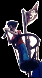 To the Left, a wicked wooden bridge to transverse. To the right, classic (and Rare!) Fun House Shaker Boards. You are about to enter the building of the Master Pirate! |