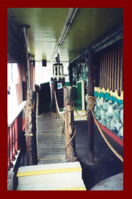 Here's the way around the Bow, don't let the Skeleton scare ya'! He's the First Mate on Tracey's Bloody ship! |