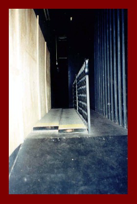 To the left, A Very simple yet effective stunt is the "Disco Ball" in a black room combined with a circular metal maze that is hard to transverse. To the right, yet another "Disturbing" and warped hallway, ALA Tracey Style. | ![]() |