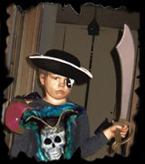 Well, well, your education continues: What can you do with Catalog Prop number 28 yee may ask ya' shifty deckhand? Take a look to the left. Bend the frame, change the hat, push in the face and fast as lighting a Cannon, the "Cowboy Skeleton" turns into a "Pirate". (complete with the now Token Rum Bottle!) |