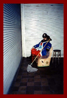 Well, Well, here we are, and HEY, even a seaworthy deckhand like the "Pirate" needs to swab the deck once in awhile! Yes, even he needs to earn his keep Matey! Hanging out and having Fun ALA "Pirate's Cove, Trimpers Amusement Rides, Ocean City Maryland! |