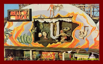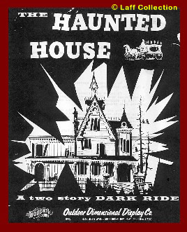 A very rare look at Tracey's version of his Haunted House, this time when his company was called: "Outdoor Dimensional Display Company". This name would have been pre-Messmore & Damon. This ride was in fact created and built at West View Park, defunct, near Pittsburgh, PA. |